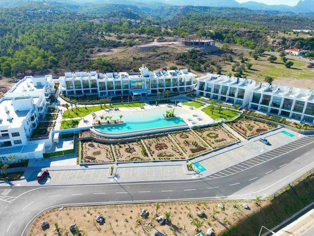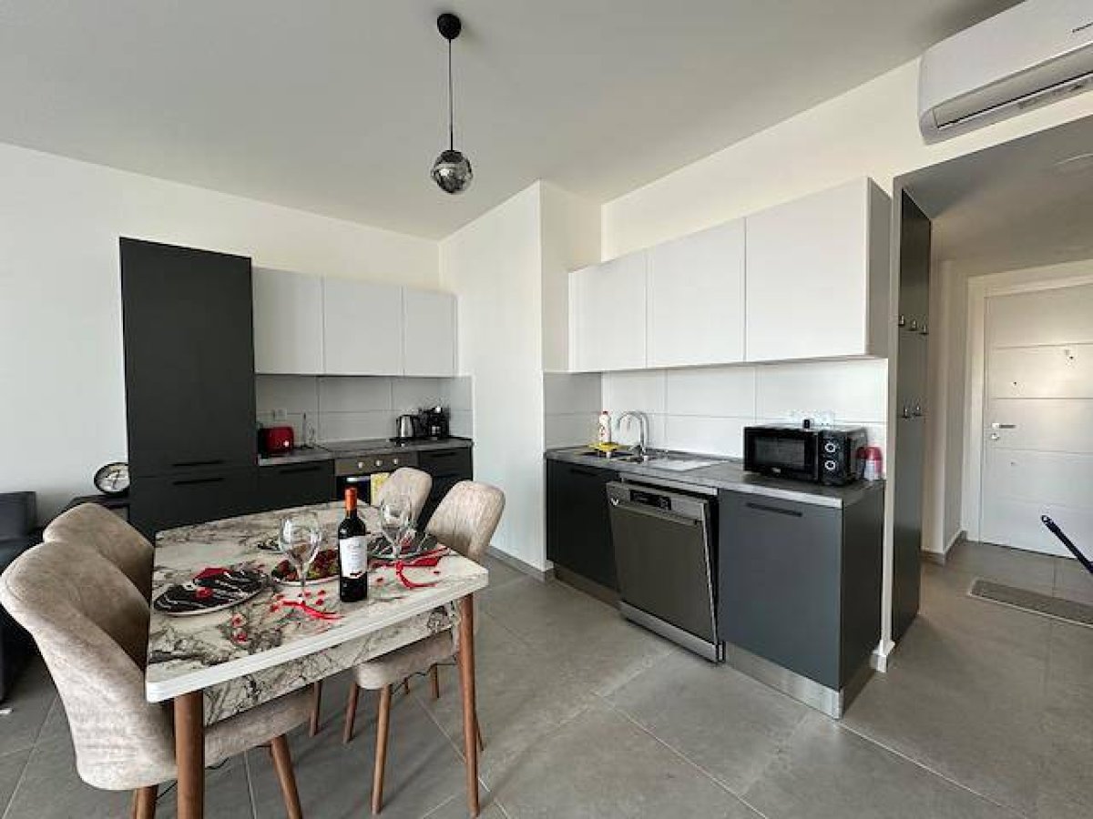 Yeni bitmiş Kuzey Kıbrısanın yüksek kaliteli Cove Garden Proje çok özel konumda yeni full eşyalı SATILIK 1+1 daire .
