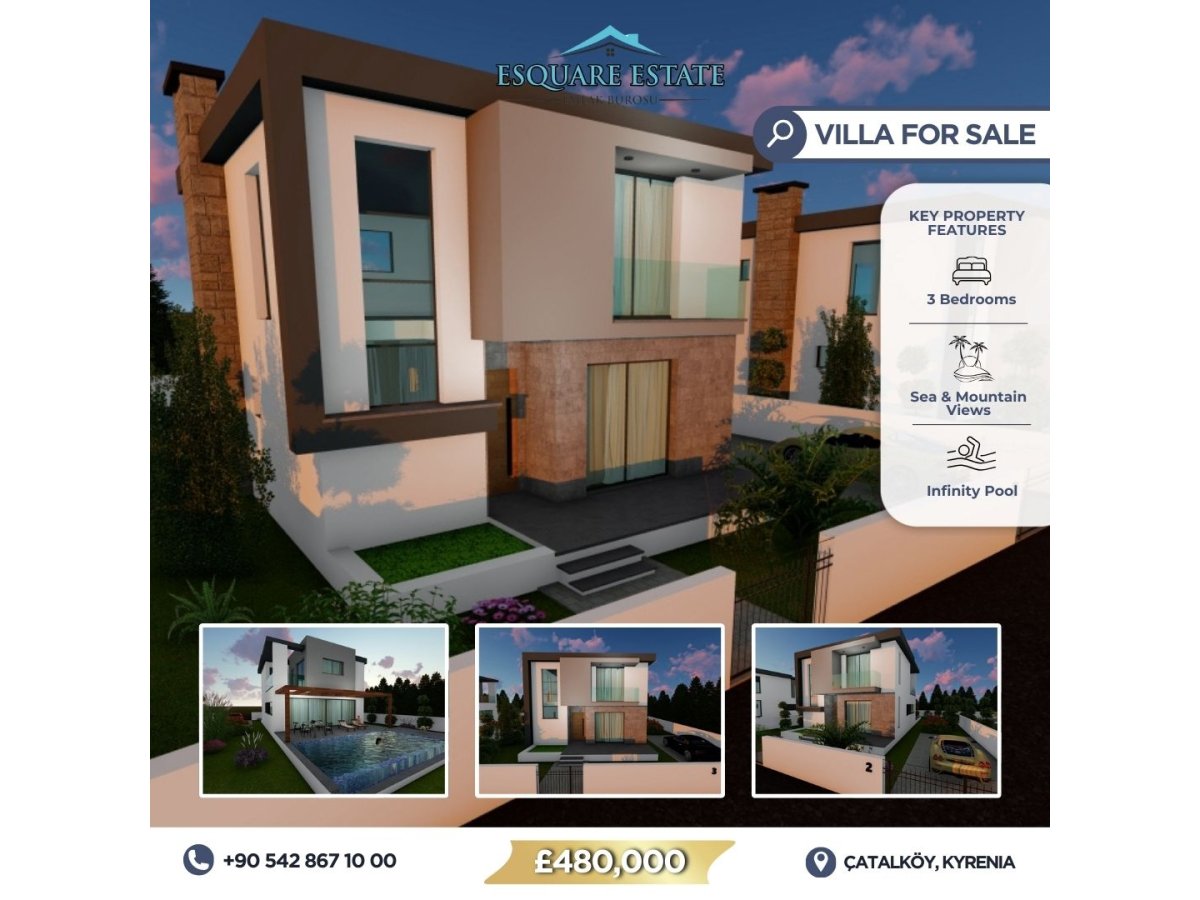 Bu güzel yepyeni geniş villaları, her zaman popüler Çatalköy bölgesinde bulunan gururla sunmaktan mutluluk duyarız – 1 ay içinde taşınmaya hazır. Villalar, çok yüksek standartlarda inşa edilmiş olup, kaliteli mobilyalarla donatılmış, bol miktarda doğal ışık ile çevrili ve etkileyici deniz ve dağ manzaralarıyla çevrilidir. Türk Tapu Senetleri ile birlikte (tüm vatandaşlık haklarına sahip olanlar alabilir). Konum hakkında: Kıbrıs’ın güzel kuzey sahilinde yer alan Çatalköy, huzur ve modern yaşamın mükemmel bir karışımını sunmaktadır. Resim-perdahlı manzaralarıyla bilinen köy, bir taraftan nefes kesici Girne dağ silsilesi tarafından çerçevelenmiş, diğer taraftan tertemiz Akdeniz plajları tarafından çevrilidir. Çatalköy, canlı Girne şehrine kısa bir sürüş mesafesindedir ve şehrin olanaklarını, imkanlarını ve prestijli Girne İngiliz Okulu’nu kaçırmak istemeyenler için idealdir. Villa genel bakışı: – 3+1 (3 yatak odalı, hepsi banyoludur) – 200m2lik mülk, 600m2lik arazi – Sonsuzluk havuzu bulunan geniş bahçe alanı – Deniz ve dağ manzaralı – Türk tapu senetleriyle – Modern mobilyalar, geniş, ferah ve kaliteli eşyalarla dekore edilmiştir – Bol miktarda doğal ışık alan ve yüksek kaliteli ünitelerle geniş açık plan oturma odası ve mutfak – Güzel giriş holü – Birden fazla araba için geniş otopark – Bir görüşme ayarlamak veya daha fazla bilgi almak için bugün iletişime geçin.