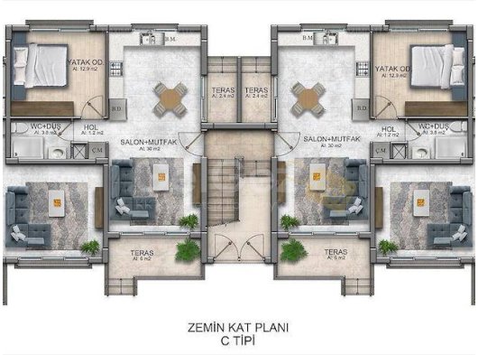 2 Yatak Odalı Daire (Zemin Kat)