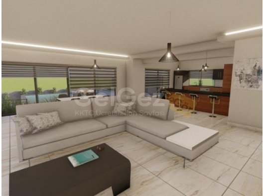 Villa içinde salonda gizli ışık ve perdelik detayı ile,tüm banyolarda gizli ışık ile,holler de ve dolap odasında alçıpan asma tavan yapılmaktadır.