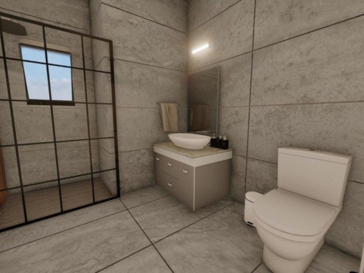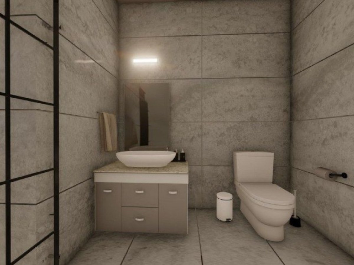 Banyo dolapları; akrilik malzemeden, beraberinde duvara monte aynası ve laminat veya mermer-granit tezgahı ile birlikte üretilecektir.