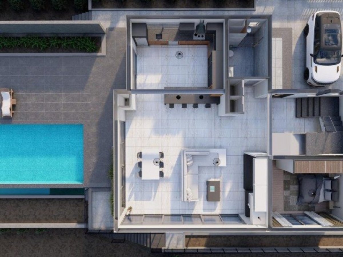 Villamızın bahçe ve çevre planlaması içerisinde zemin kat terasında yapılmış olan yaklaşık 40m² alana sahip, sonsuzluk havuzu bulunmaktadır. Villanın sahip olduğu vadi ve deniz manzaralı havuz içerisinden de sağlanmaktadır.