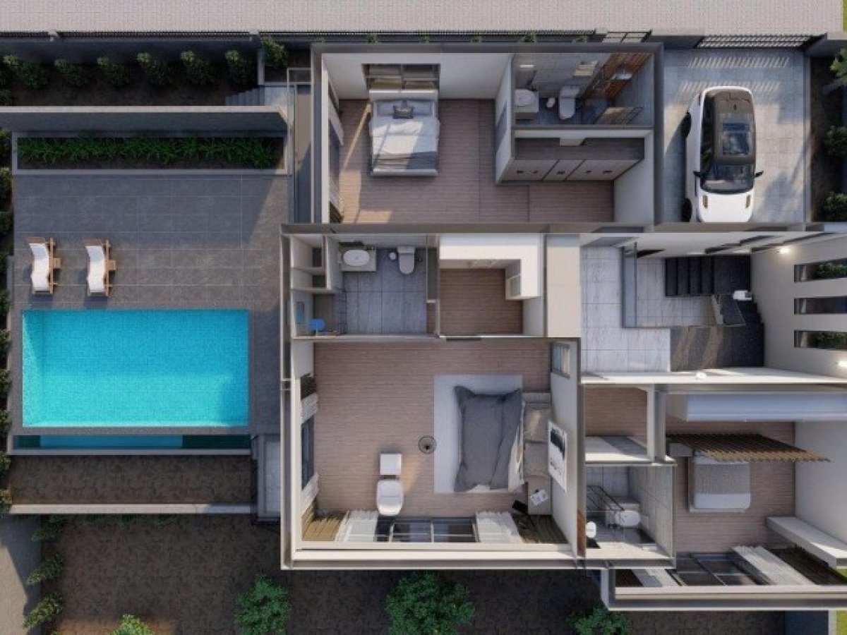 Villamız 320m² olmak üzere; 2 katlı Dublex olup 4+1 (4 oda ve 1 salon) yaşam alanından oluşmaktadır.