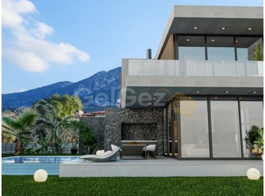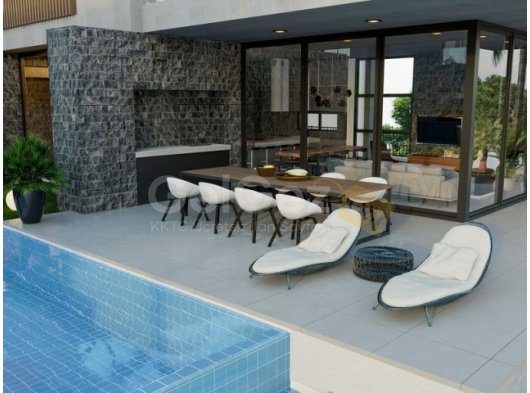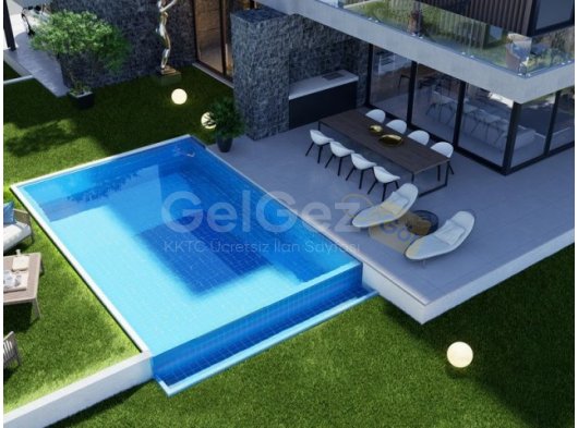 4 yatak odalı planlı butik çağdaş villa projesi + yüzme havuzu + VRF sistemi + yerden ısıtma altyapısı