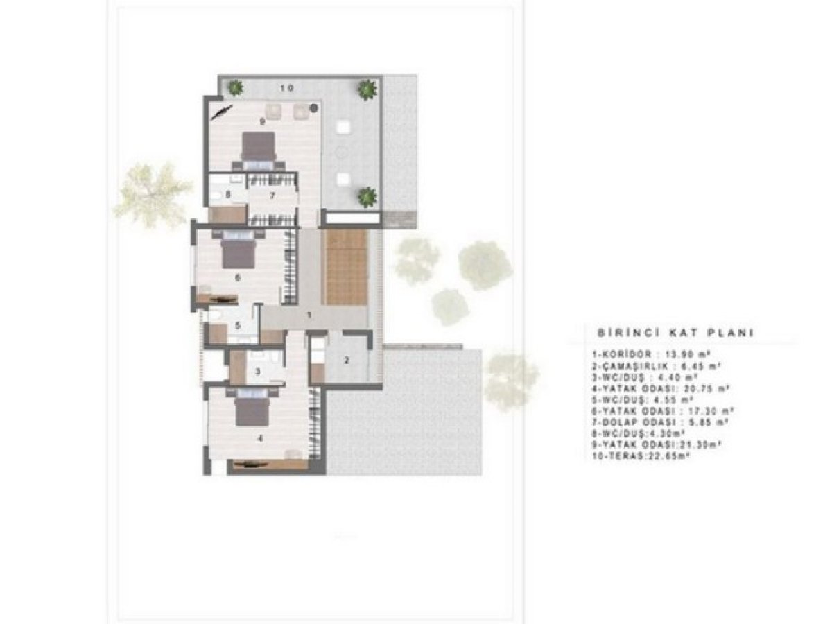 • Toplam 245m2 alan
