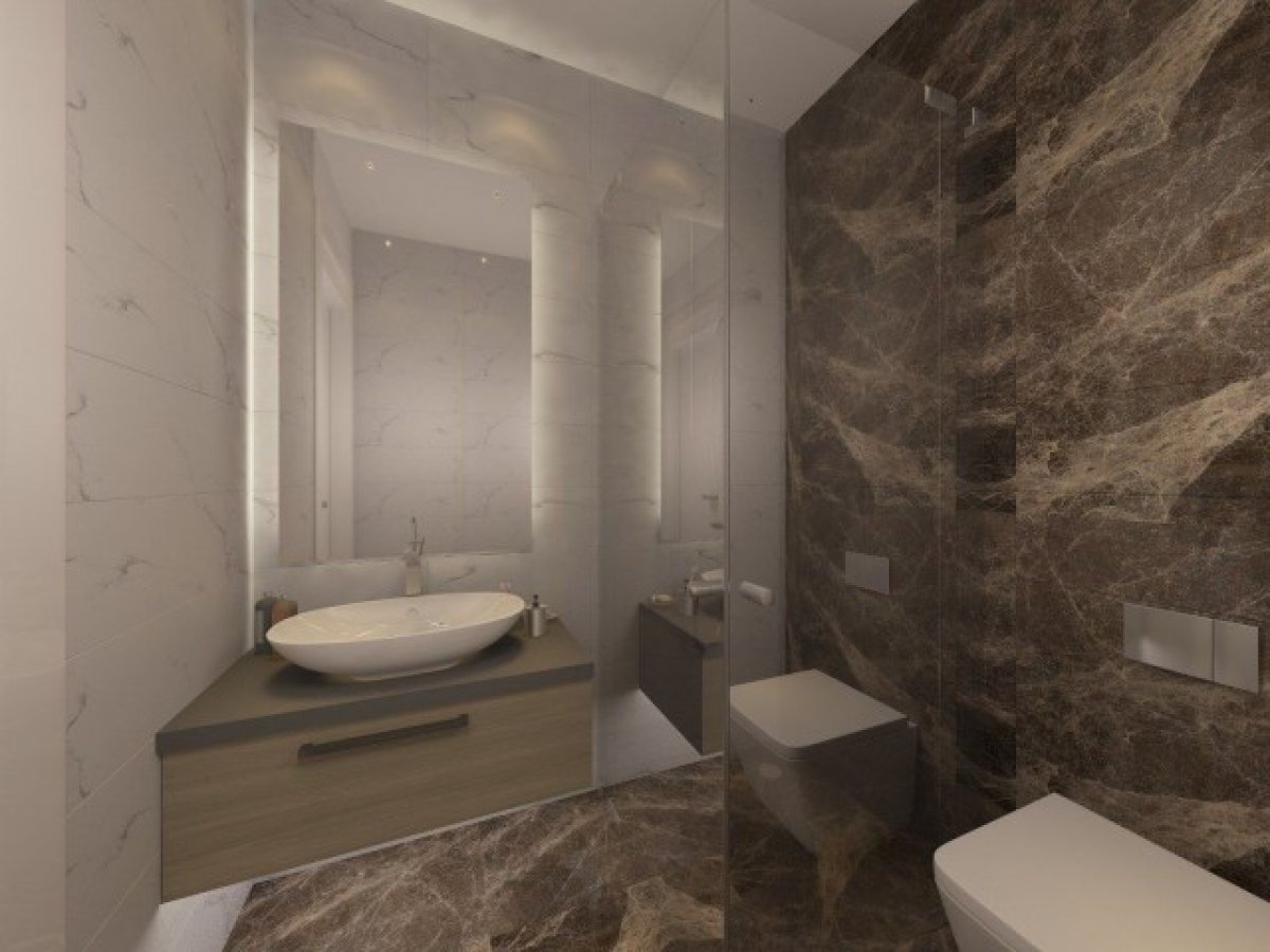 Duvar : Alçı sıva üzeri su bazlı boya, tezgah arası 1. Sınıf fayans (Kütahya ve Muadili)