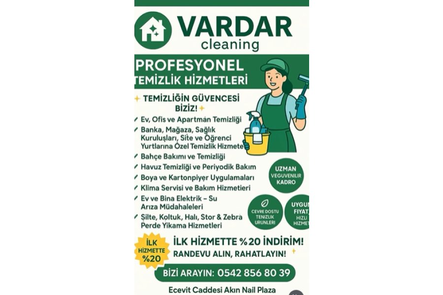 Vardar Cleaning, kurumsal temizlik hizmetlerinde deneyimli ekibi ve kaliteli ürünleriyle tertemiz çalışma alanları sunar.