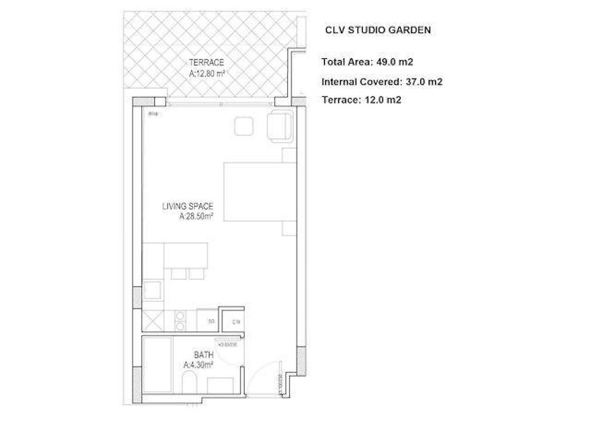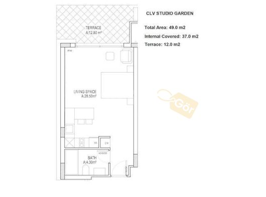- Stüdyo brüt 37 m² artı 12 m² terastan oluşmaktadır.