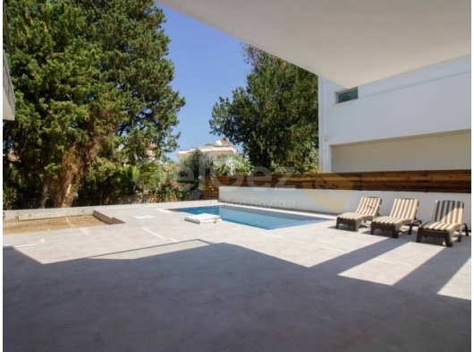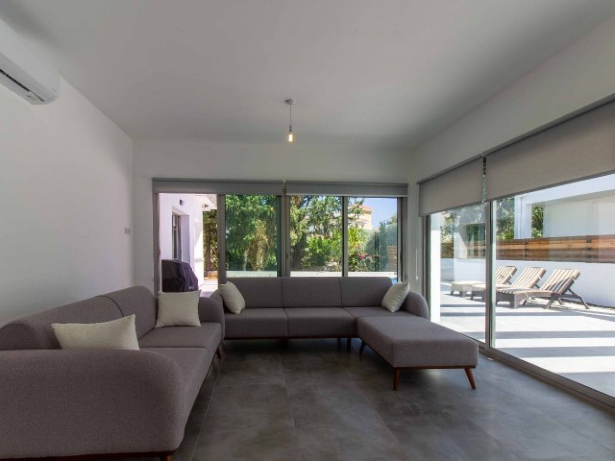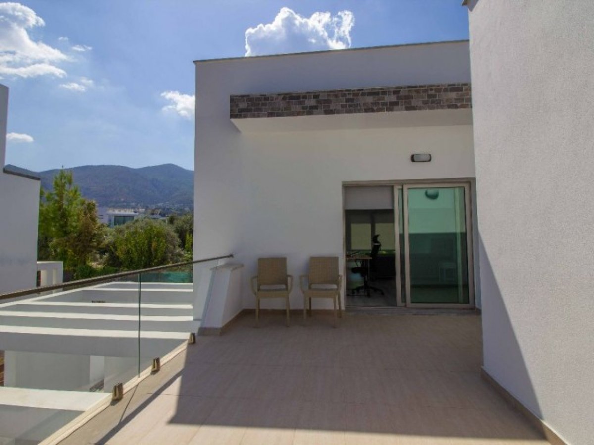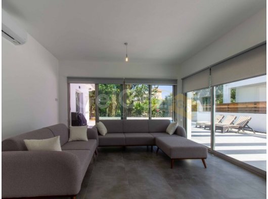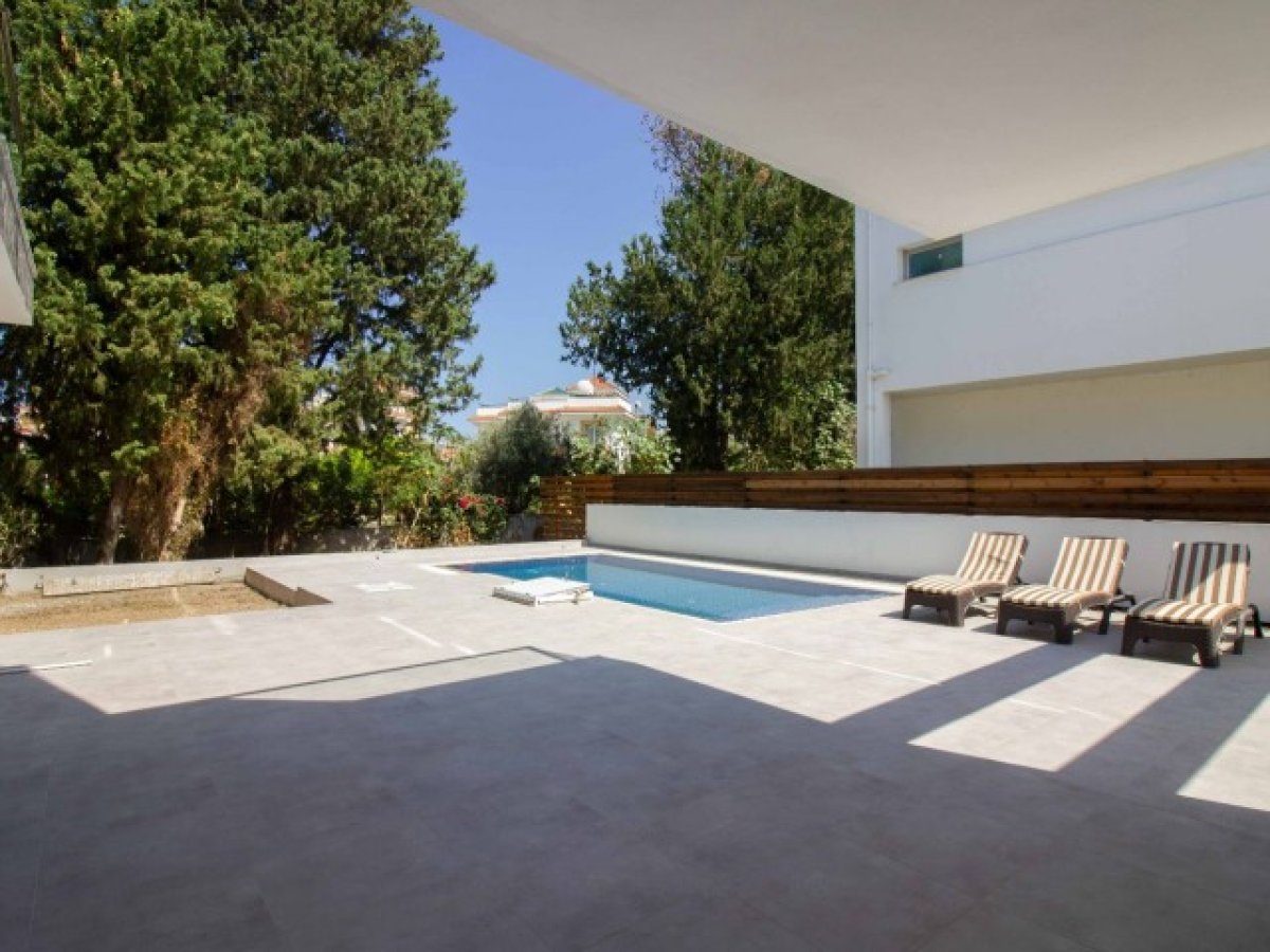 Eve girdiğinizde, modern merdivenlere sahip hoş bir giriş holü bulacaksınız. Salon alanı son derece geniştir ve geniş havuza ve kapalı teras alanına erişim sağlayan sürgülü kapılara sahip cam pencerelerle çevrilidir. Ortasında granit bir kahvaltı barı bulunan ayrı bir mutfak ve yemek alanı vardır. Tüm modern mutfak aletleri dahildir. Mutfak ayrıca dinlenmek, güneşlenmek ve nefes kesici gün batımının tadını çıkarmak için mükemmel bir yer olarak hizmet veren geniş teras alanına erişim sunmaktadır. Alan, uzun köklü çam ağaçları ve eski zeytin ağaçlarının bulunduğu geniş bir bahçeye bakmakta ve geniş bir mahremiyet sağlamaktadır. Ayrıca, açık hava keyfi için kapalı bir alan bulunmaktadır.