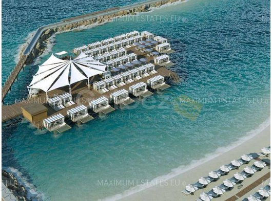 Sahilde barı, güneşlenme alanı ve yaz çardakları bulunan SU ÜZERİNDEKİ PATIO.