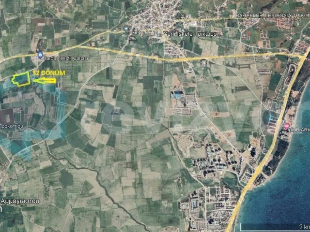 İSKELE SINIRÜSTÜ BÖLGESİNDE RESMİ YOLU MEVCUT 32 DÖNÜM SATILIK ARAZİ