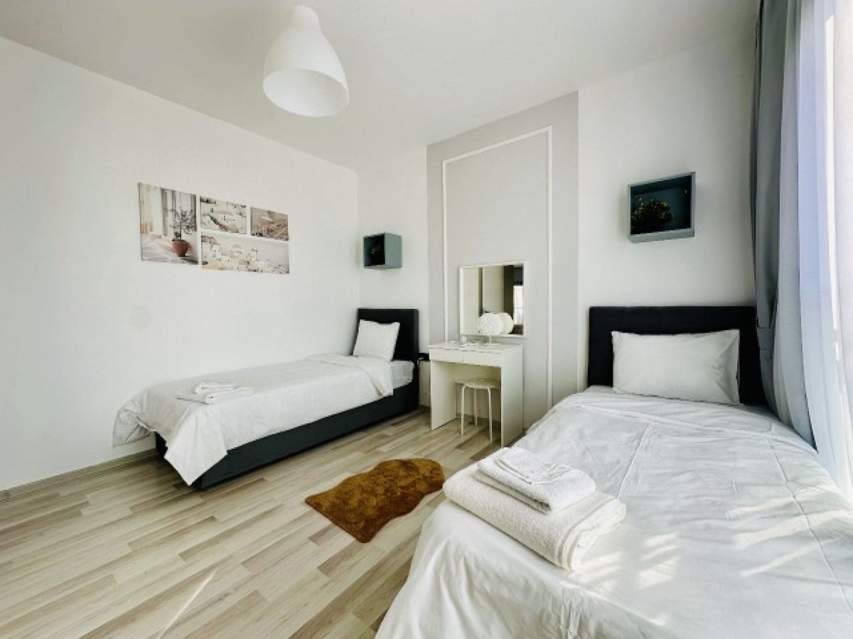 Modern ve tamamen eşyalı bu 2 yatak odalı, 2 banyolu lüks daire, sahil beldesi tarzında inşa edilmiş seçkin bir komplekste yer alıyor. Konfor, kolaylık ve ayrıcalıklı yaşam bir arada!