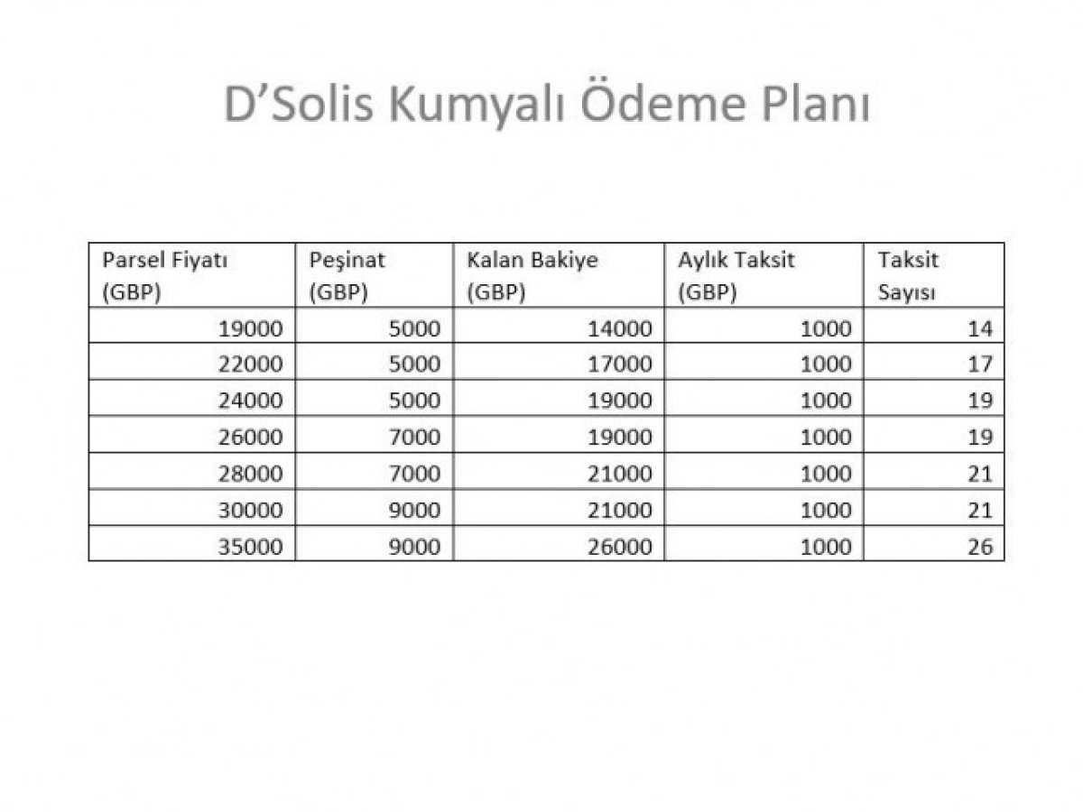 Parsel fiyatları: 19.000 GBP – 35.000 GBP