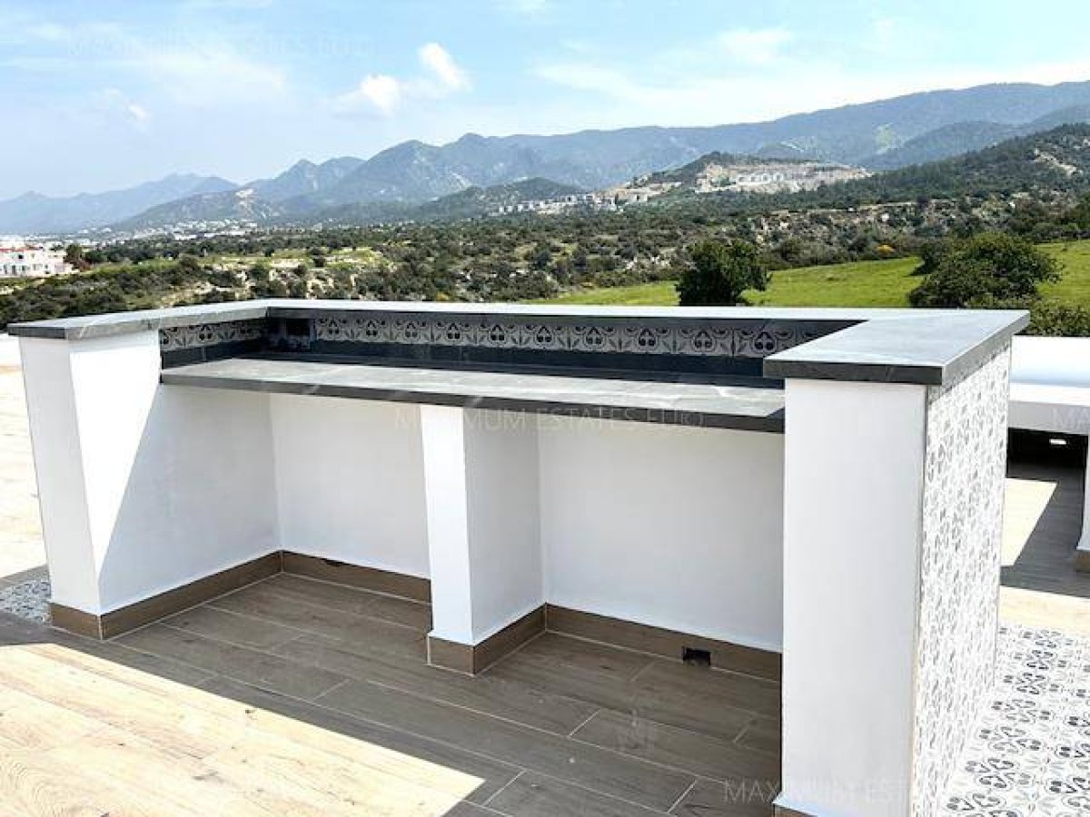 - Barbekü alanına sahip, muhteşem deniz ve dağ manzaralı çatı terası.