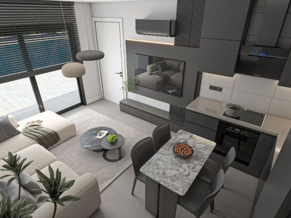 Kuzey Kıbrıs'ın en gözde bölgelerinden biri olan Yeniboğaziçin'de , tatil köyü konseptinde tasarlanmış modern bir sitede yer alan 1+1 dairemiz satışa sunulmuştur.