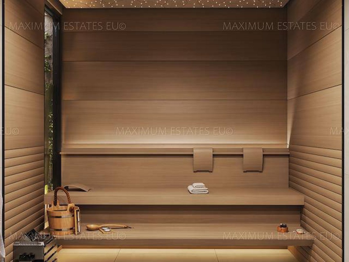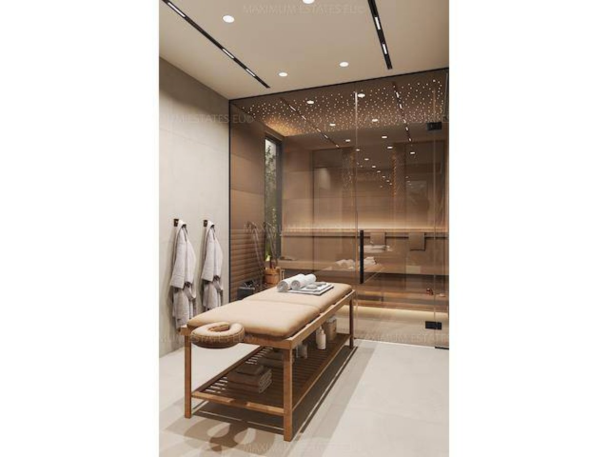 Spor salonu olanakları ve yakınlarda alışveriş olanakları bulunan seçkin bir villa kompleksinde yer almaktadır.