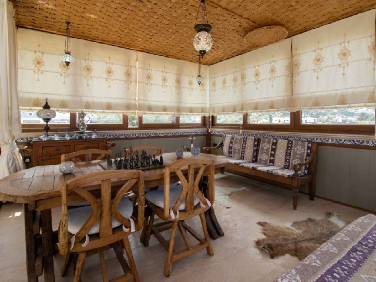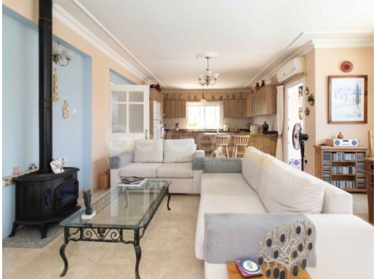 Çok geniş salon, yemek odası ve mutfakta, soğuk Kıbrıs kış akşamları için harika olan odun sobalı (gazlı) hoş bir şömine vardır.