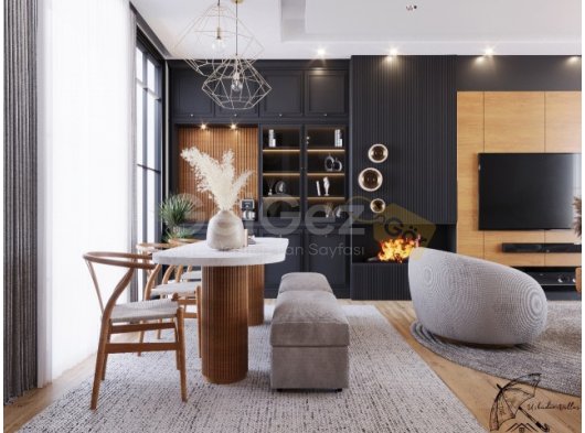 Şömineli, bahçeye açılan ferah oturma odası