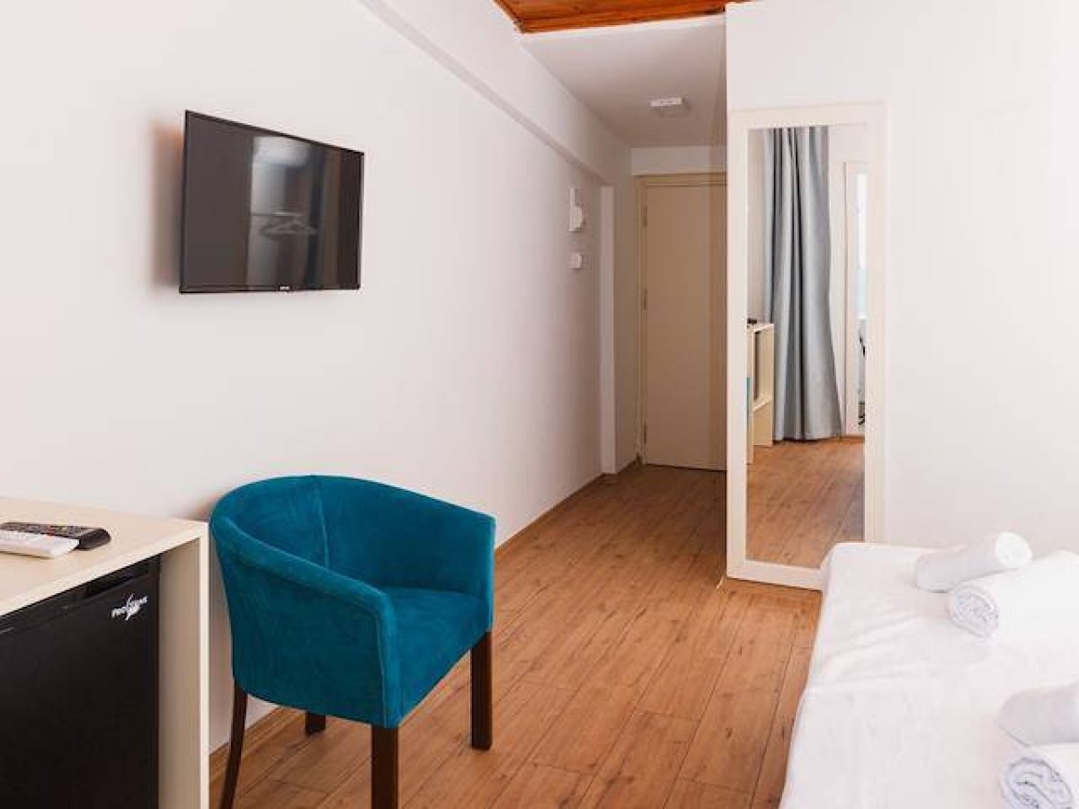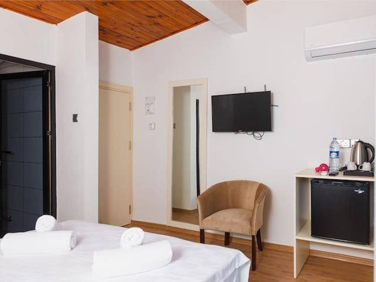 Konforlu yataklar, AC Wi-Fi, TV ve modern tasarımlı banyolara sahip stüdyolar ve 1 yatak odalı çatı katları.