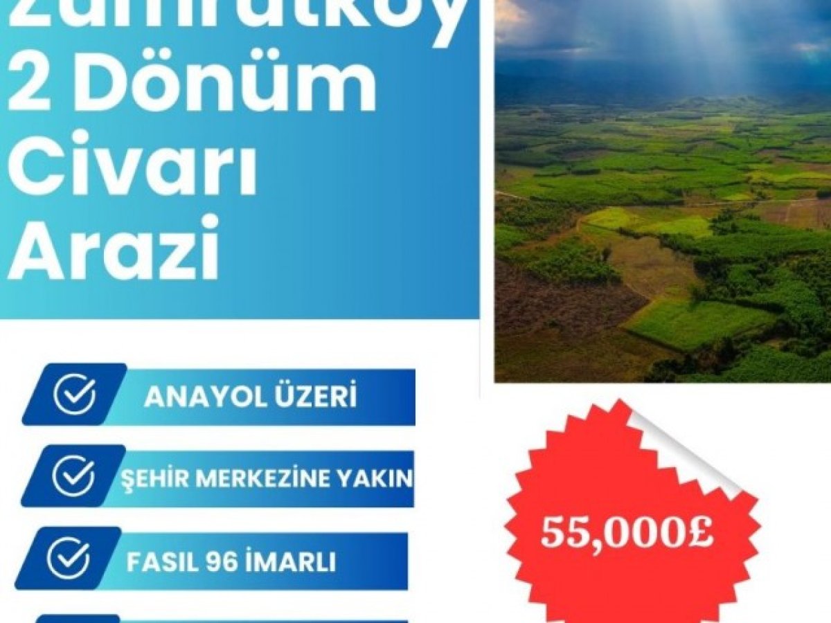 Zümrütköy/GÜZELYURT'ta resmi yolu olan, ana yola, elektrik ve suya yakın yaklaşık 2 dönüm 1 evlek arazi satılıktır. Fiyatı 55000 sterlin. Facebook: Seyland Real Estate +90 548 8800322